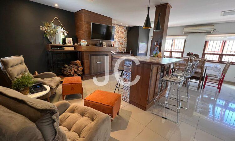 3 dormitórios, sendo 1 suite, banheiro social, lareira, cozinha sob medida, quiosque, churrasqueira, piscina.